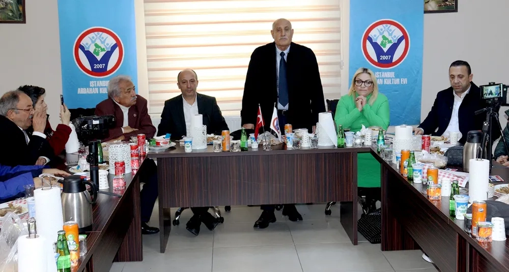 HABER: NEZİR KARAYÜN / ESENYURT - İstanbul Ardahan Kültür Evi, On Ocak Çalışan Gazeteciler Günü dolayısıyla her yıl olduğu gibi bu yıl da gazetecilerle bir araya geldi. Kültür Evi toplantı salonunda gerçekleşen buluşma, samimi atmosferi ve yöresel ikramlarıyla dikkat çekti. Programda Ardahan’a özgü kaz yemeği, çeçil peyniri ve erik hoşafı misafirlere sunuldu.