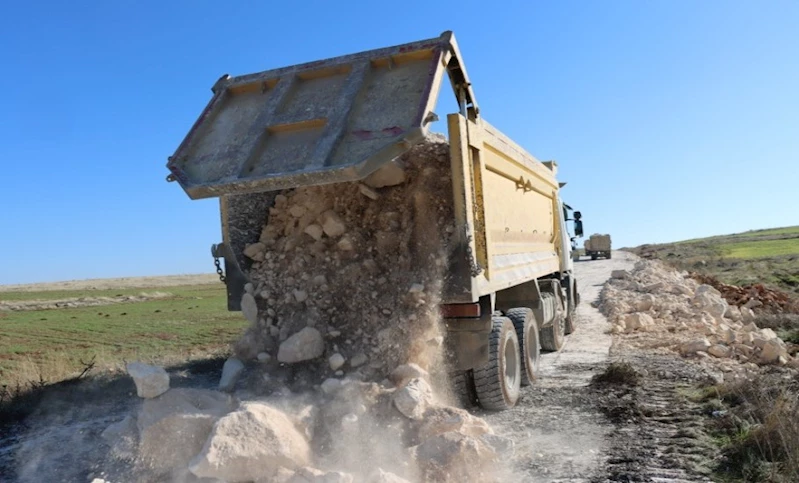 Şanlıurfa Büyükşehir Belediyesi Kırsal Hizmetler Daire Başkanlığı ekipleri Bozova ilçesine bağlı Pir Halil grup yolunda stabilize yol çalışması yapıyor. Daha önce tek şeritli olan grup yolu iki şeride çıkarılacak.